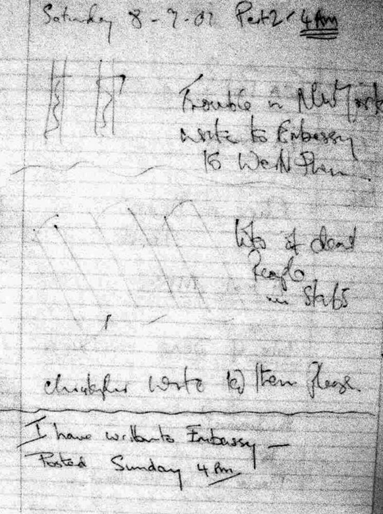 The notes for the year 2001 were all sent to the [American] secret service, who asked for them in the U.S. … the dreams were so terrible, I got up and then went back to sleep – and this was written at about four in the morning on Sunday the 9th.