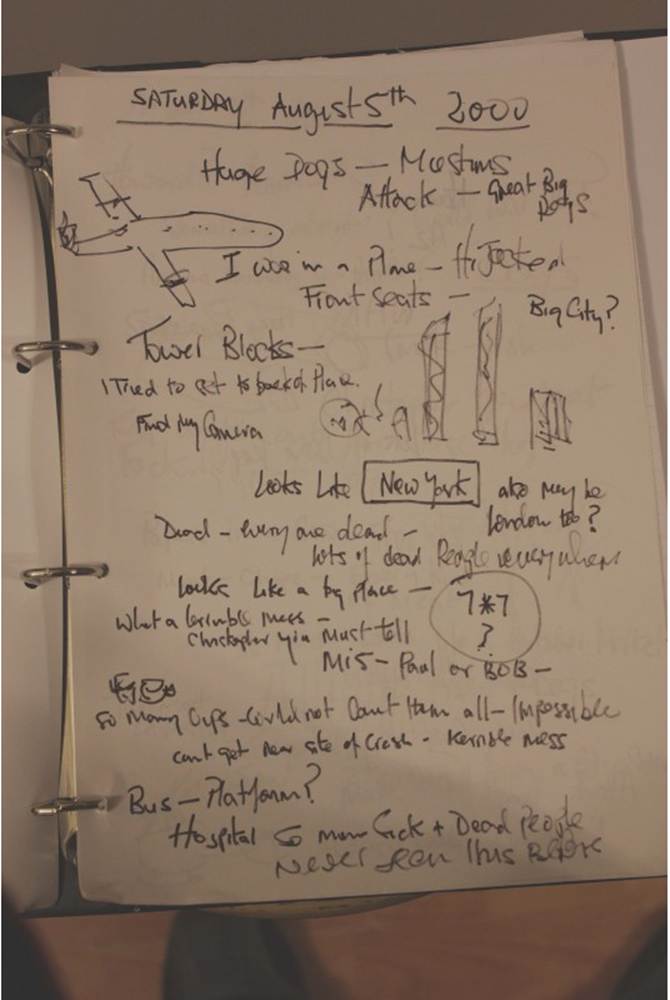 Figure 2. Robinson’s dream notes for 8–9 September 2001.
