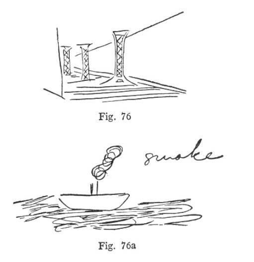Craig states that fragments of forms are likely to appear first, such as a curved line, or a straight one, or two lines of a triangle. But sometimes ‘the complete object appears; swiftly, lightly, dimly-drawn, as on a moving picture film.’13Sinclair (1930/2001), 107.