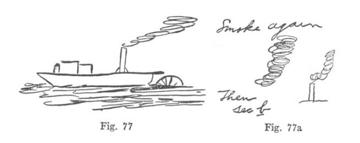 In another instance, Upton’s drawing of an elevated railway upside down was represented by Craig as a steamboat. These clearly failed to match, but she repeated elements of the same image for Upton’s next drawing in the series, which this time was actually of a steamboat: