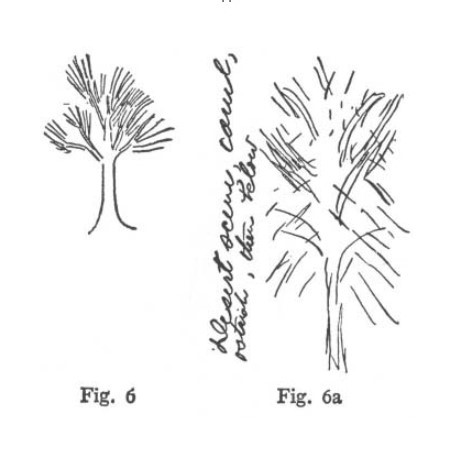 Of the resulting 130 drawings, none was a successful match with the originals. There was one partial success; seven were suggestive and five slightly suggestive. The remaining 116 were failures. The objects drawn by the women were often clearly different from the target: for instance a box with an open lid was represented as a small terrier dog, a harp as a long tobacco pipe, and a rat as a four wheeled cart.